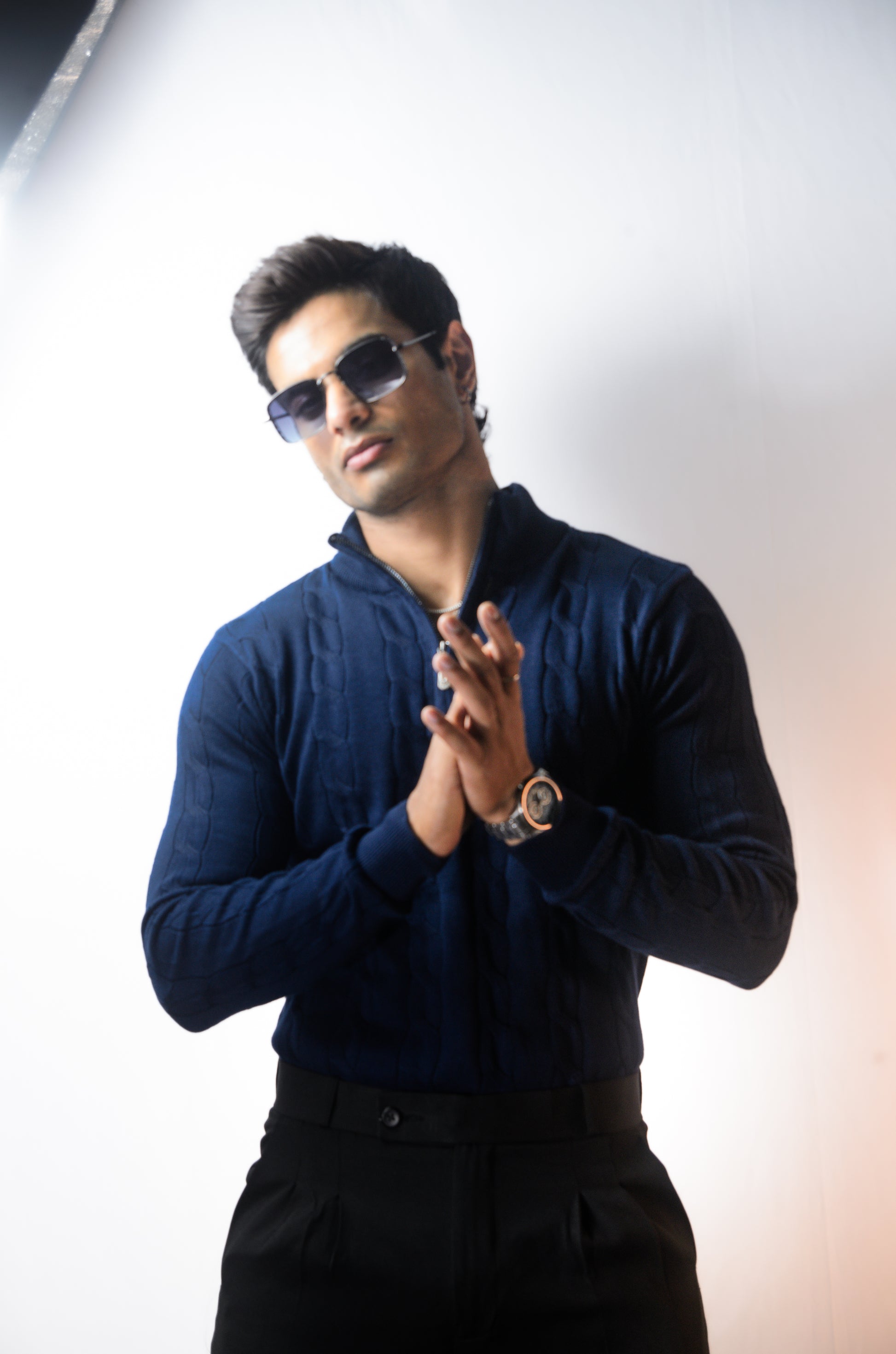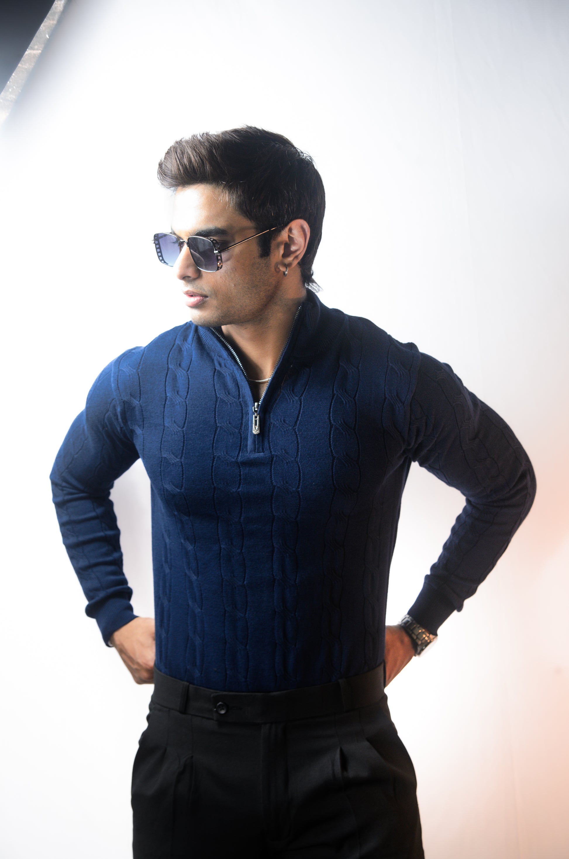 Riviera Knit Full Sleeve T-shirt- Navy Blue