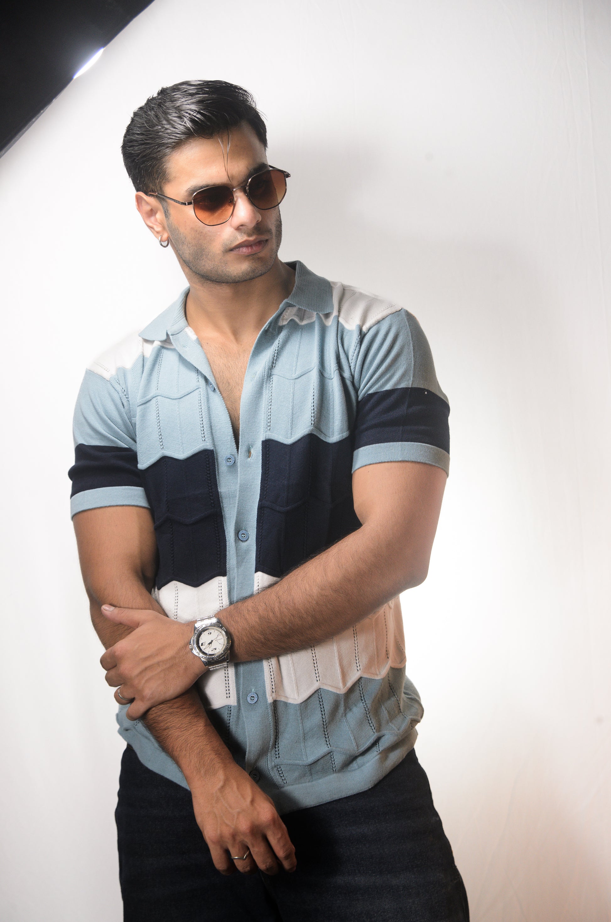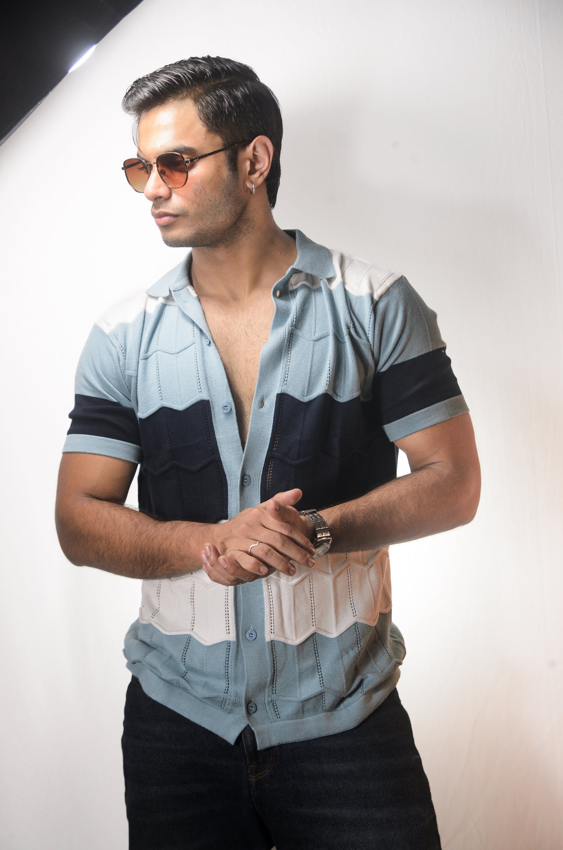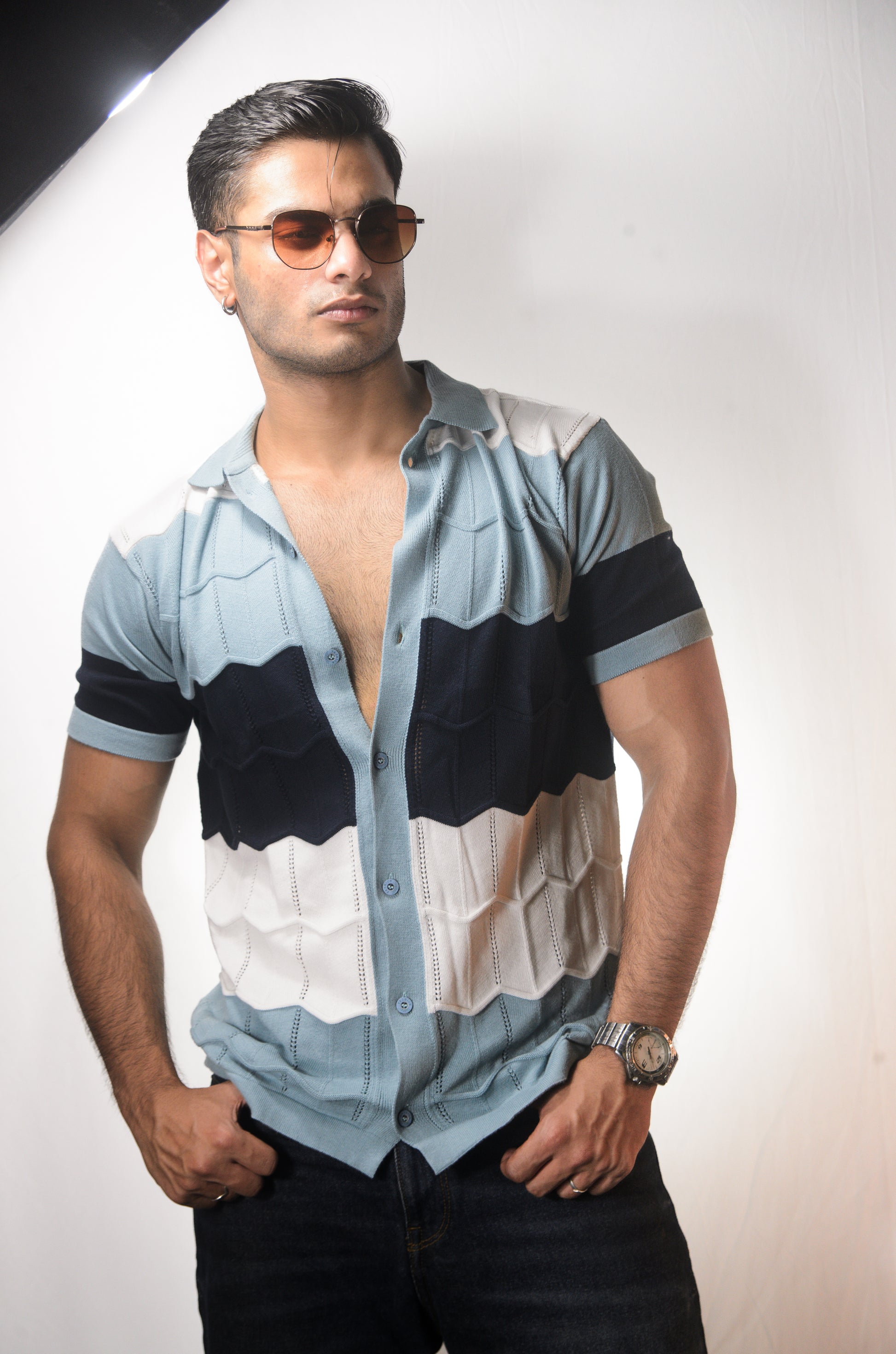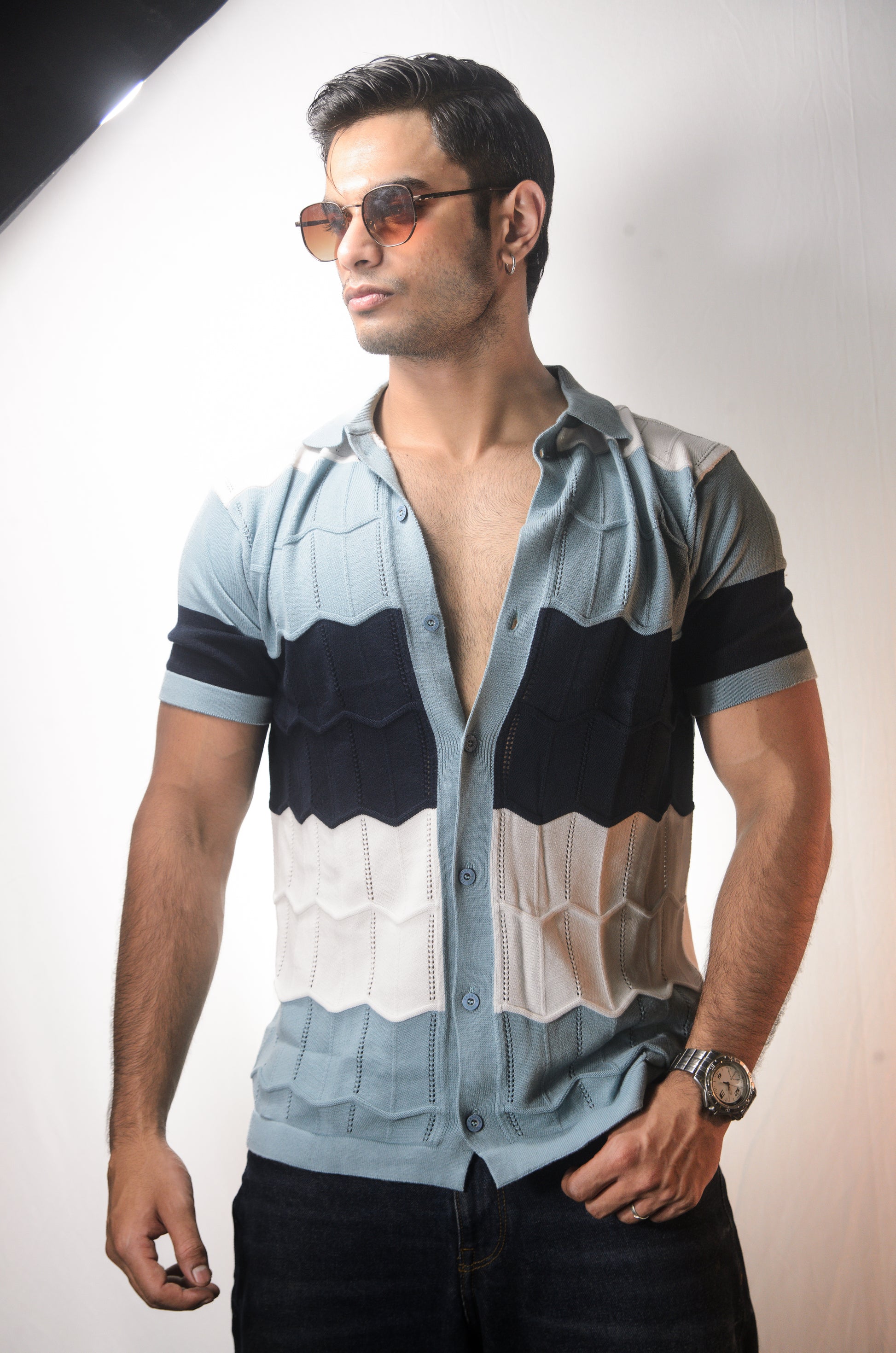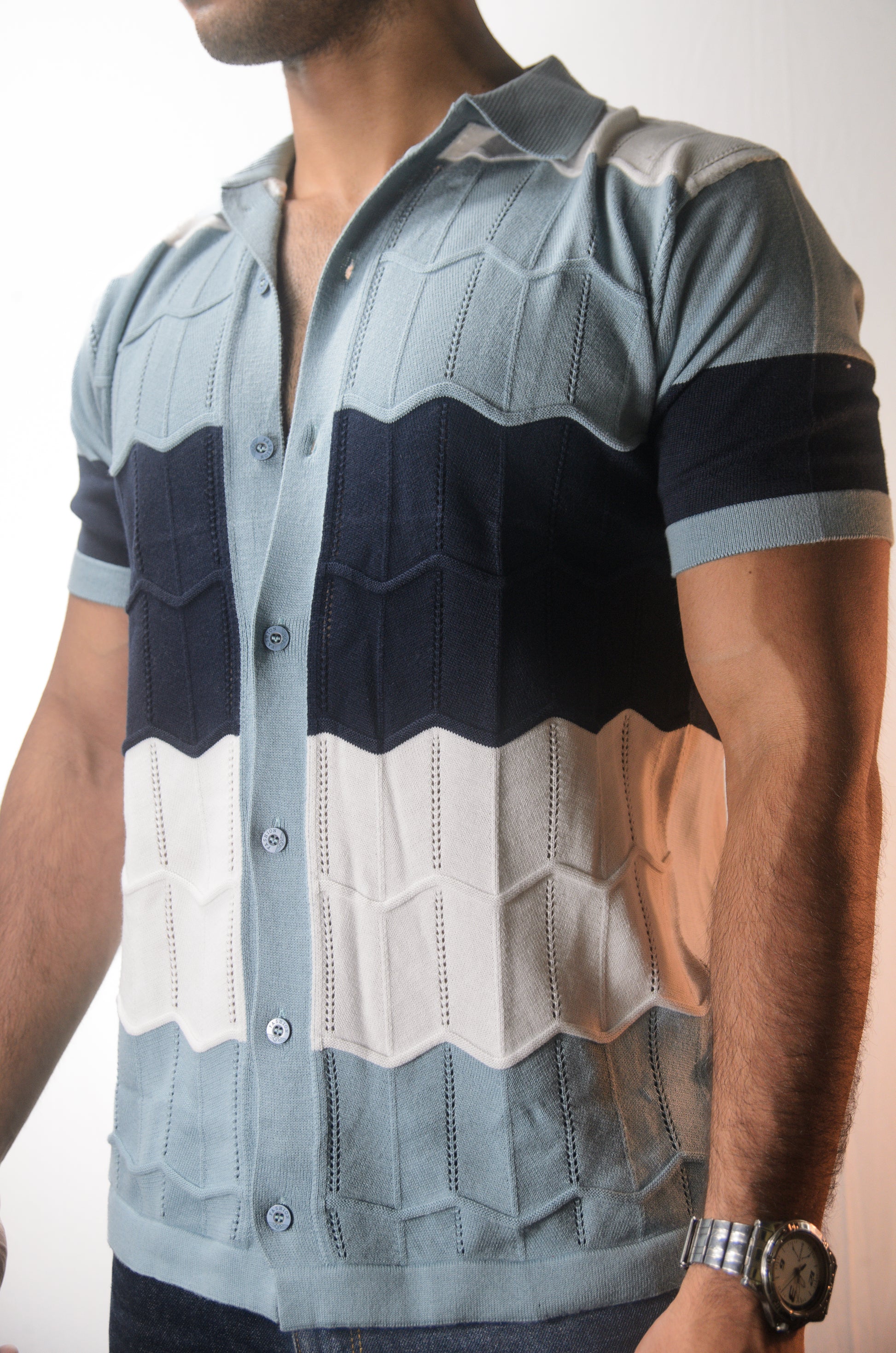 The Chill Stitch Knitted Shirt - NAVY