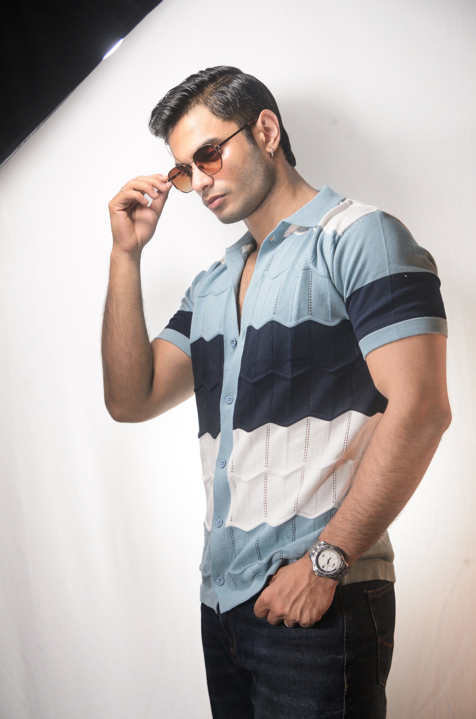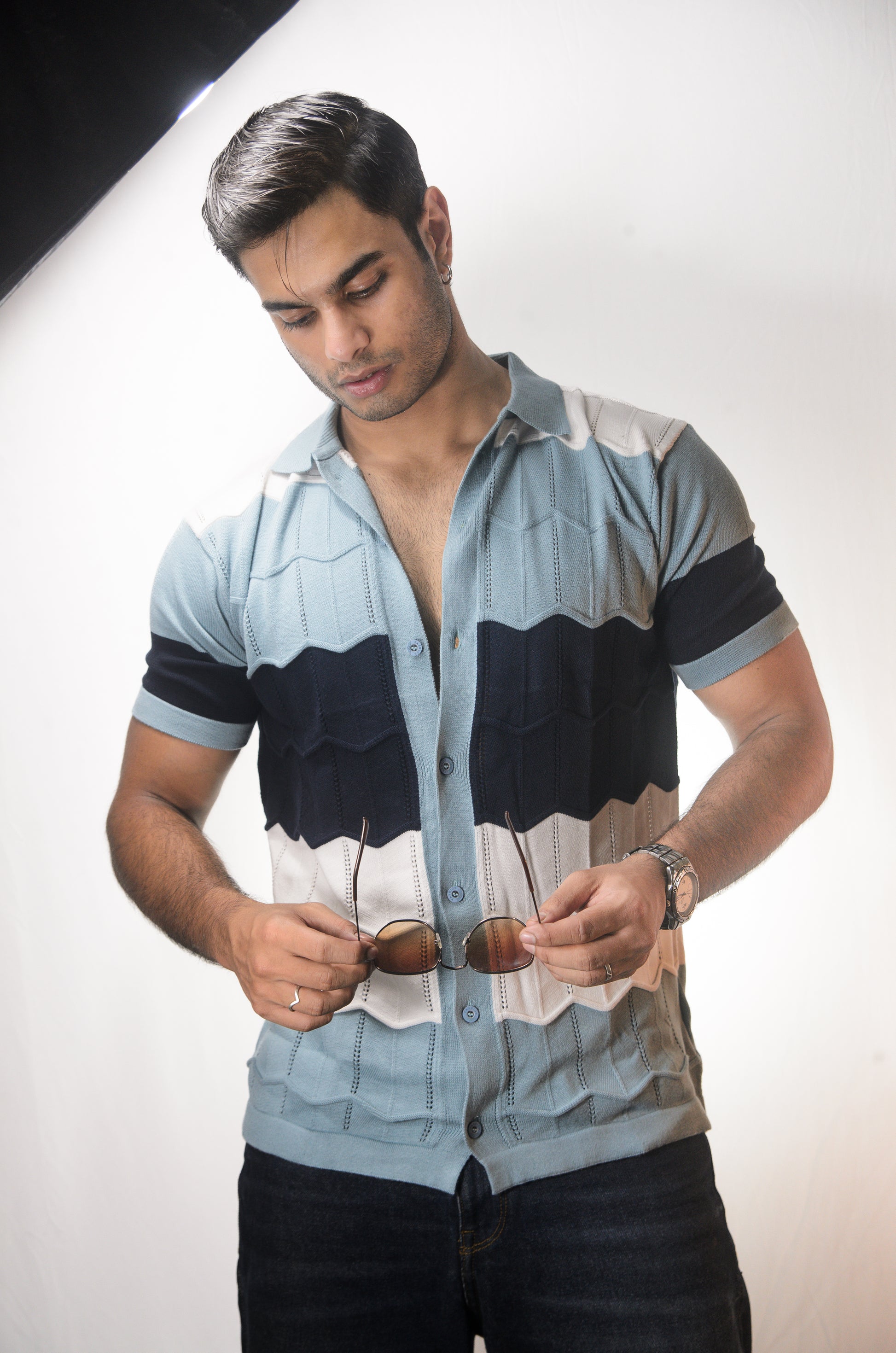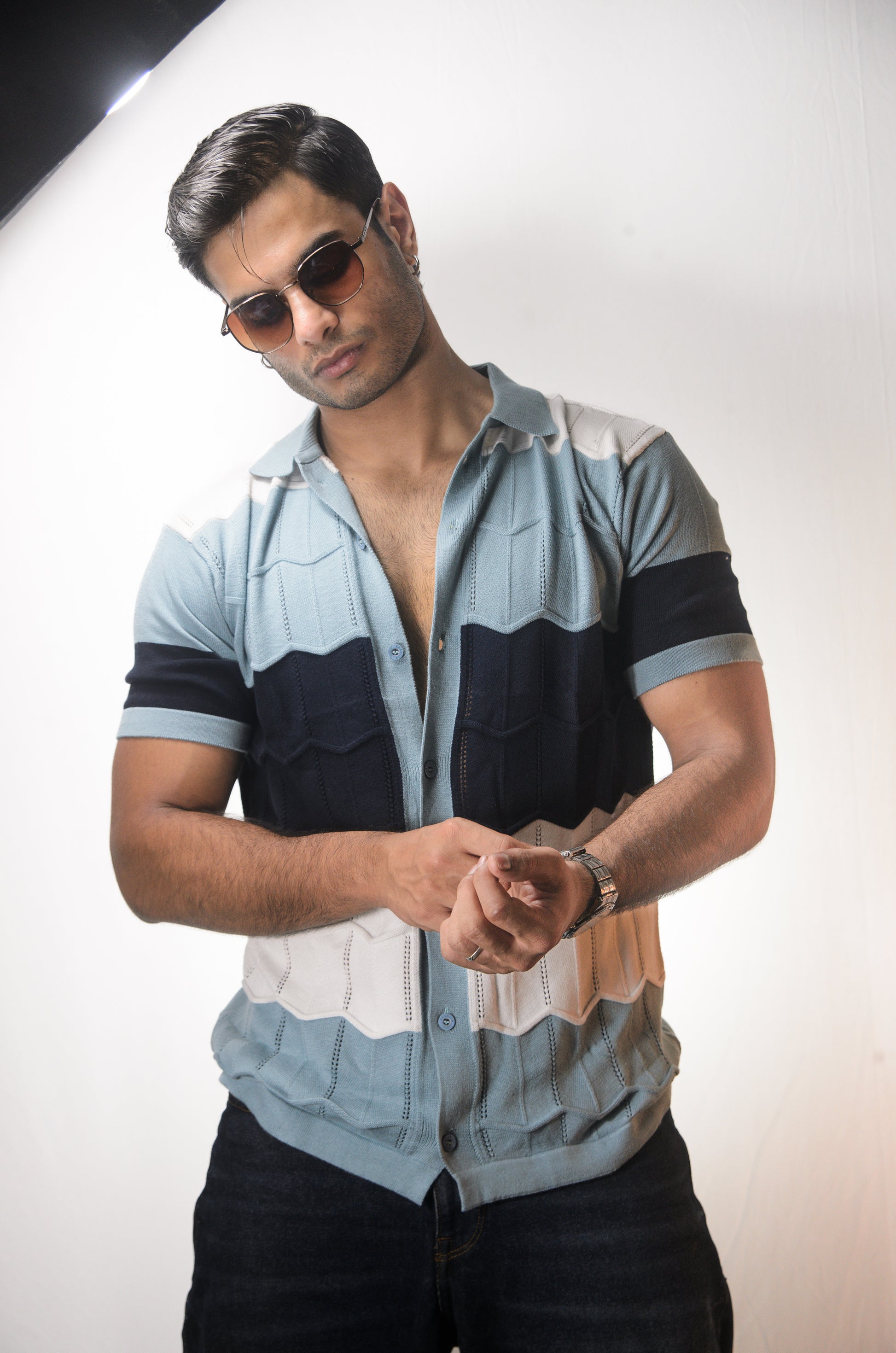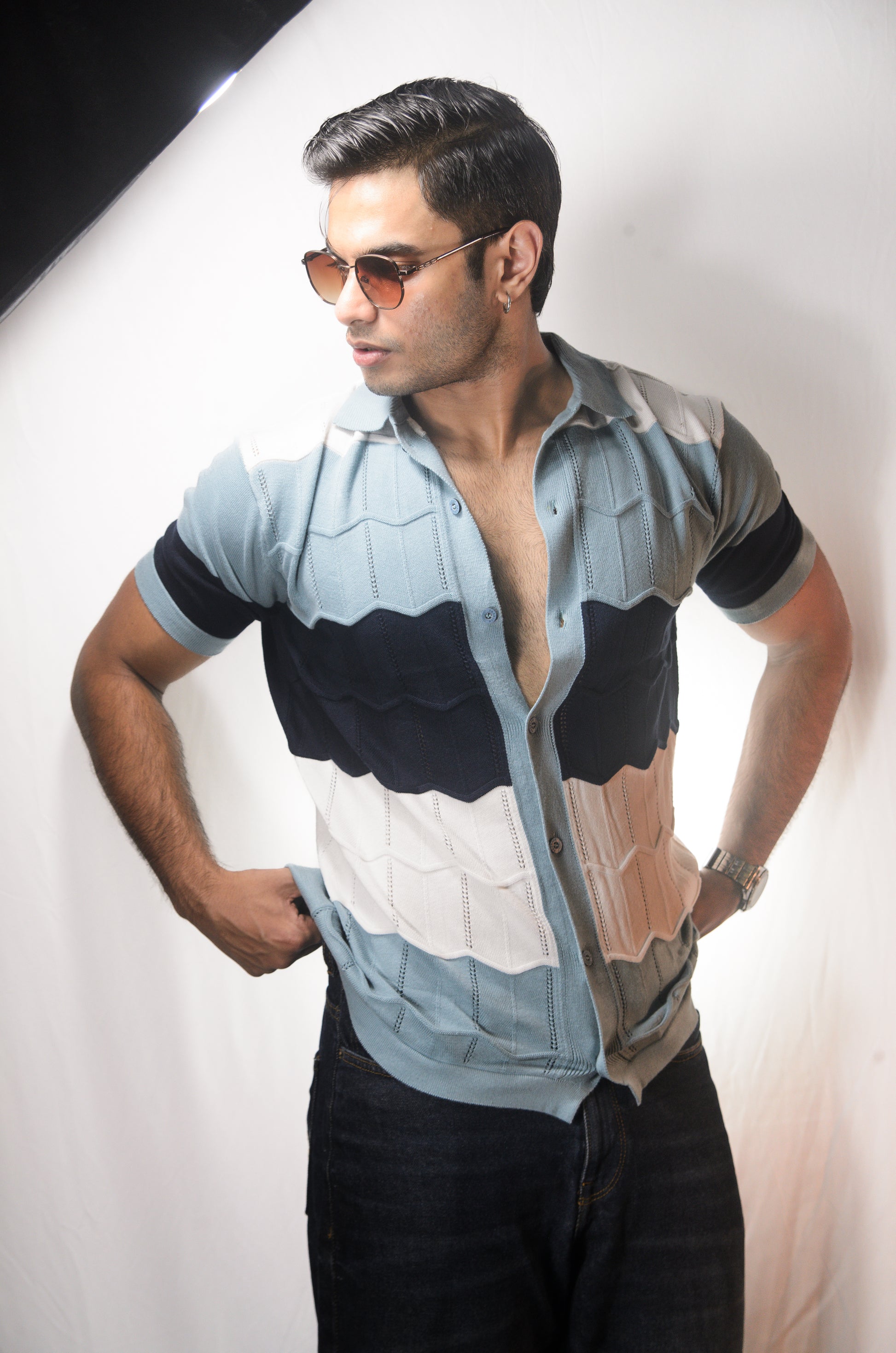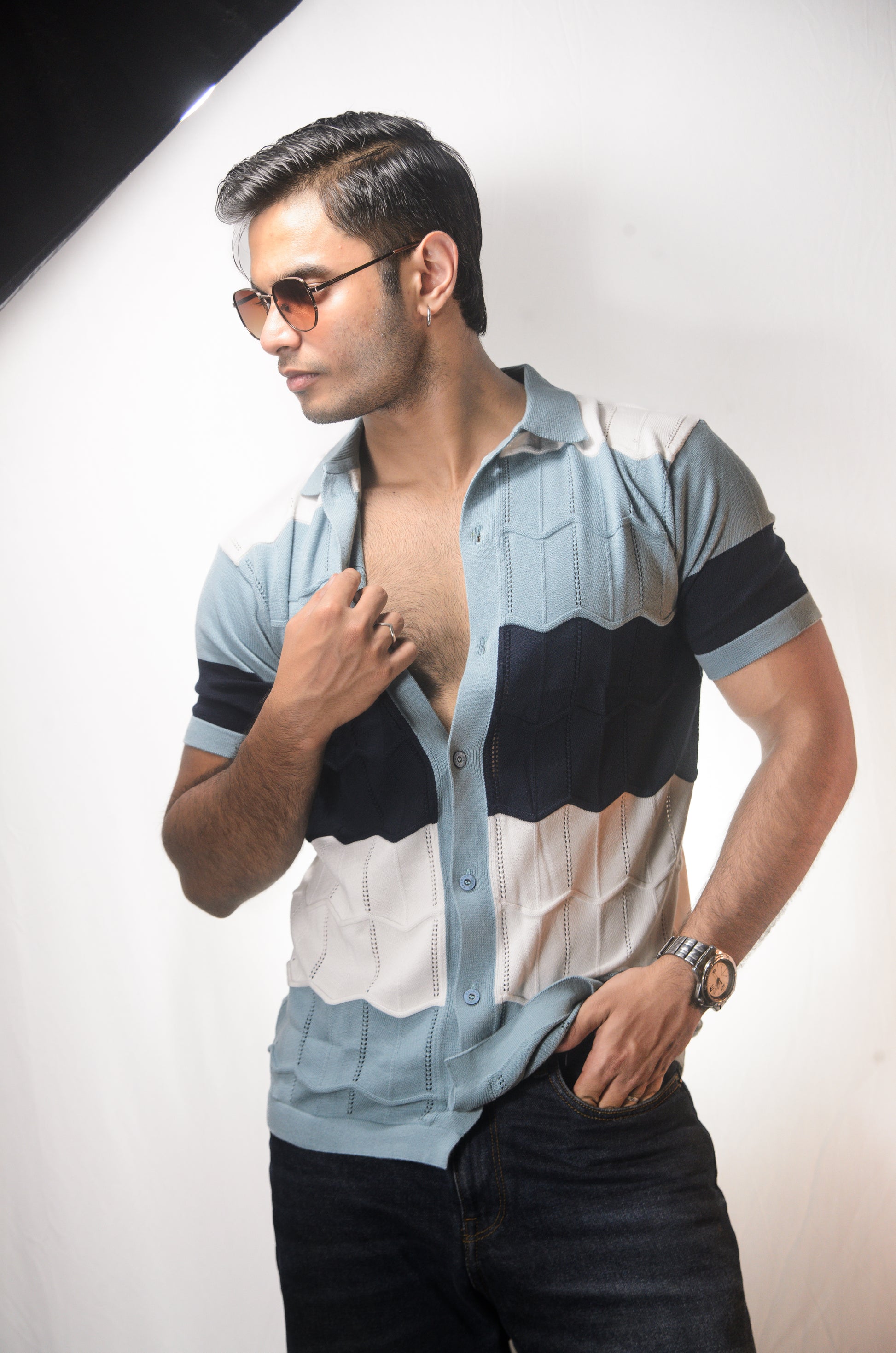 The Chill Stitch Knitted Shirt - NAVY
