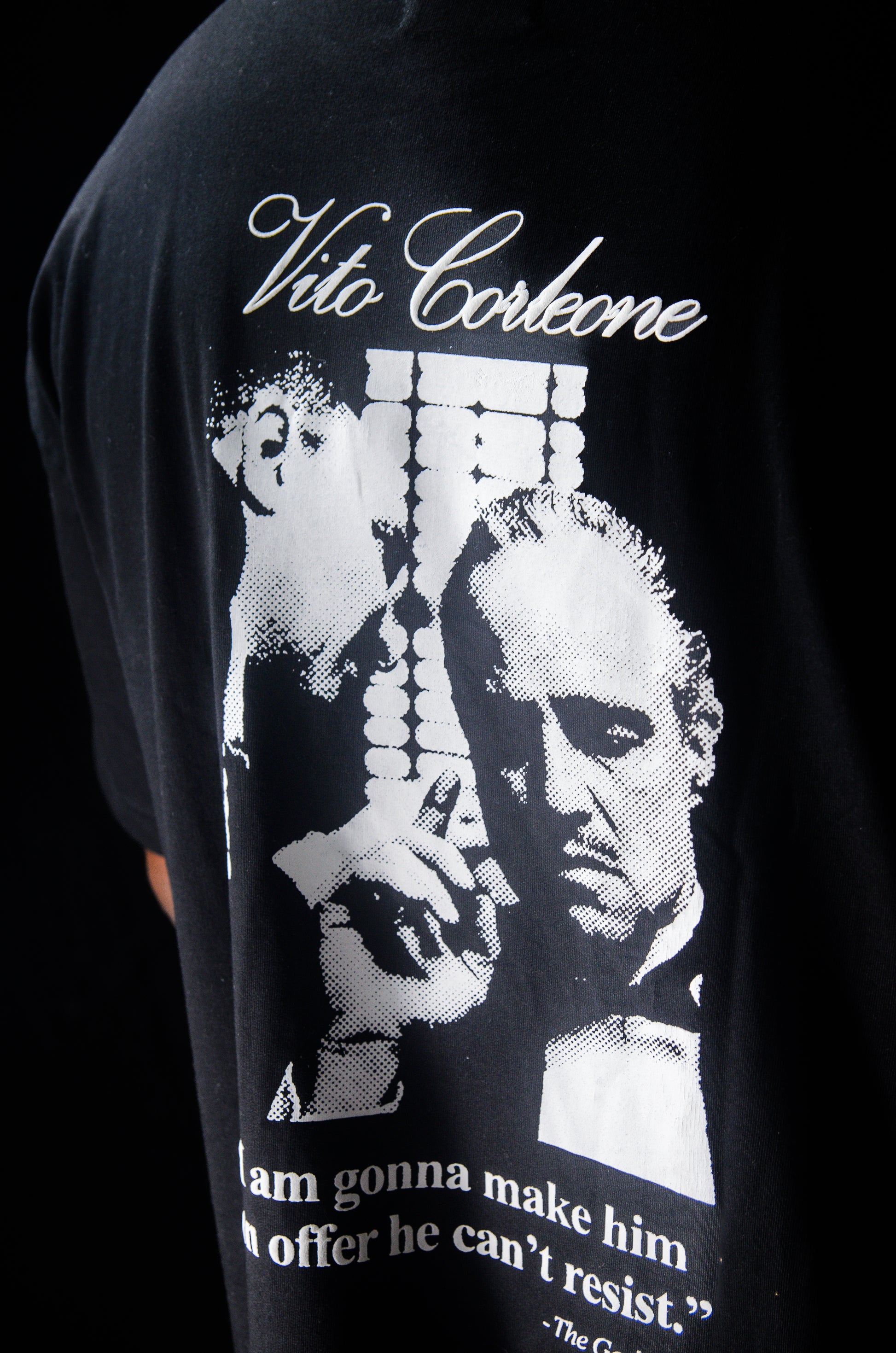 Featuring an iconic portrait of Vito Corleone with the legendary quote, “I’m gonna make him an offer he can’t refuse,” this design pays tribute to timeless authority and quiet dominance.