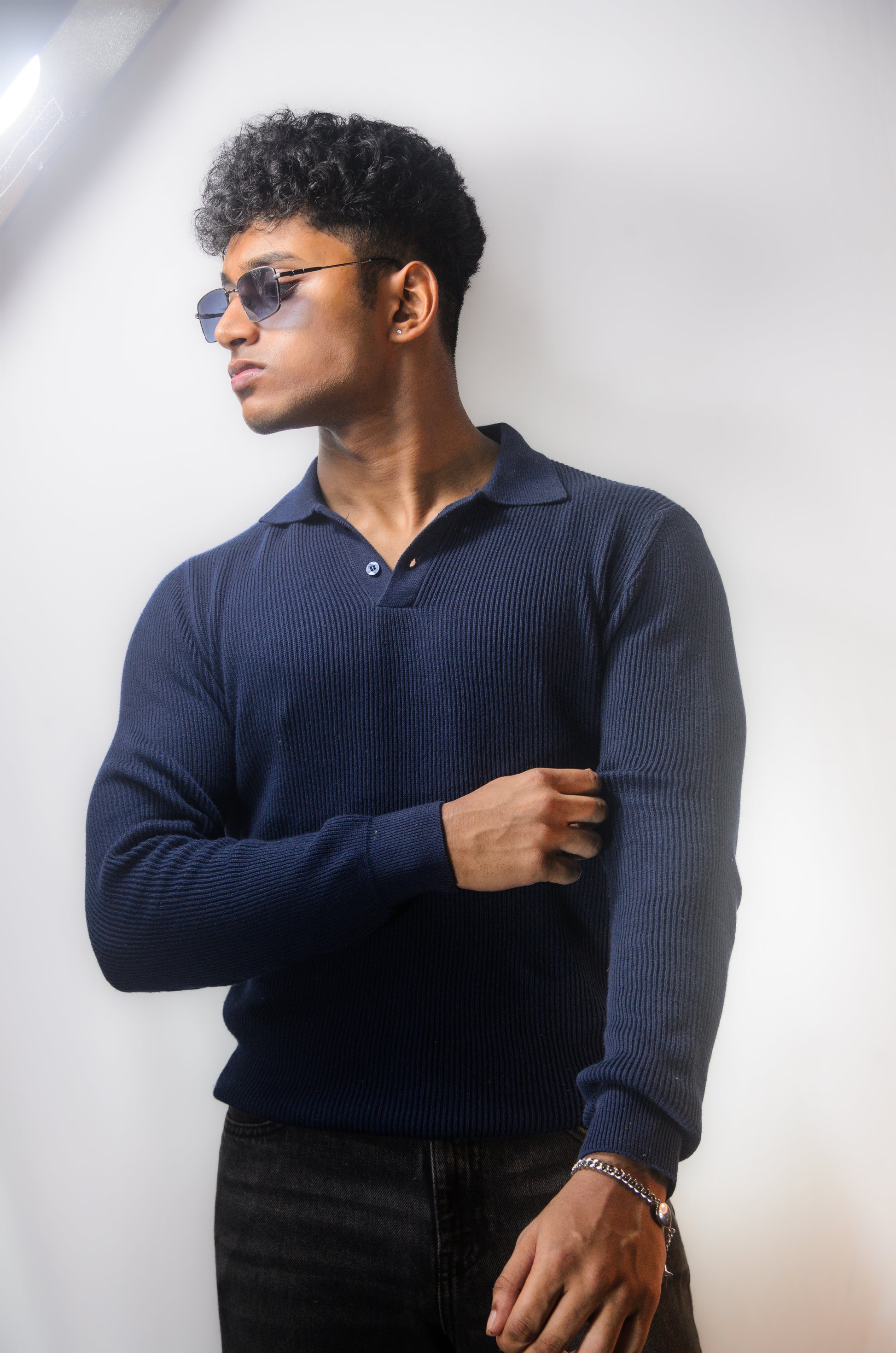 The Valmont Full Sleeve Polo - NAVY